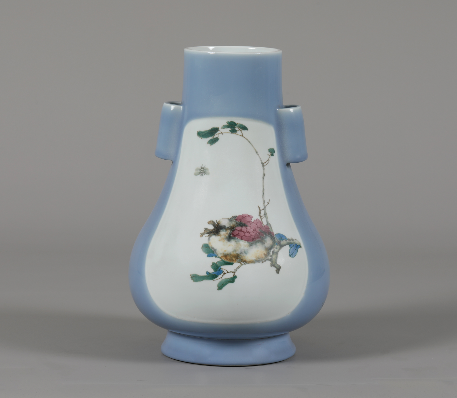 精品欣赏〡天青开光釉下五彩花卉贯耳瓶